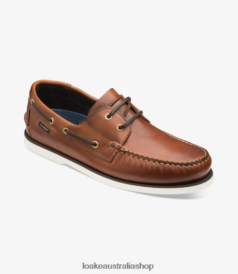 Two eyelet deck shoe, made with cedar burnished calf leather. Model 528 features a moccasin construction white rubber sole, and is fully leather lined. Model 528 is made in Portugal.