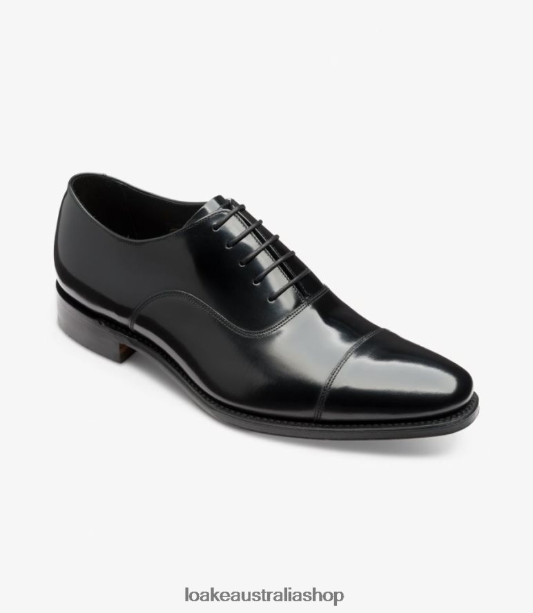 Contemporary black toe cap oxford shoe, made with polished leather, featuring a rubber stud sole for extra grip and wear, Finsbury is made in India.